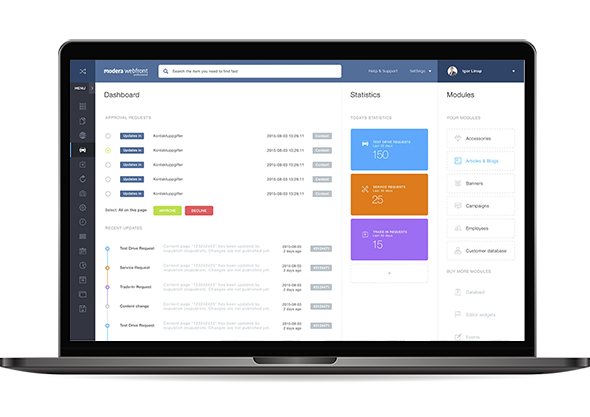 Modera is a cloud-based industry specific website building system. It is designed based on the requirements and processes of the automotive industry. As of now, it is one of the most advanced content management systems when it comes to automotive websites.