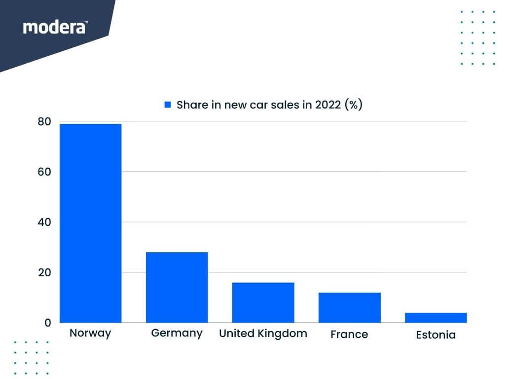Last year, the most sold models of electric vehicles in Europe were Tesla Model Y and Model 3 with a combined market share of 8%. There really are no outstanding leaders on the market at this point.