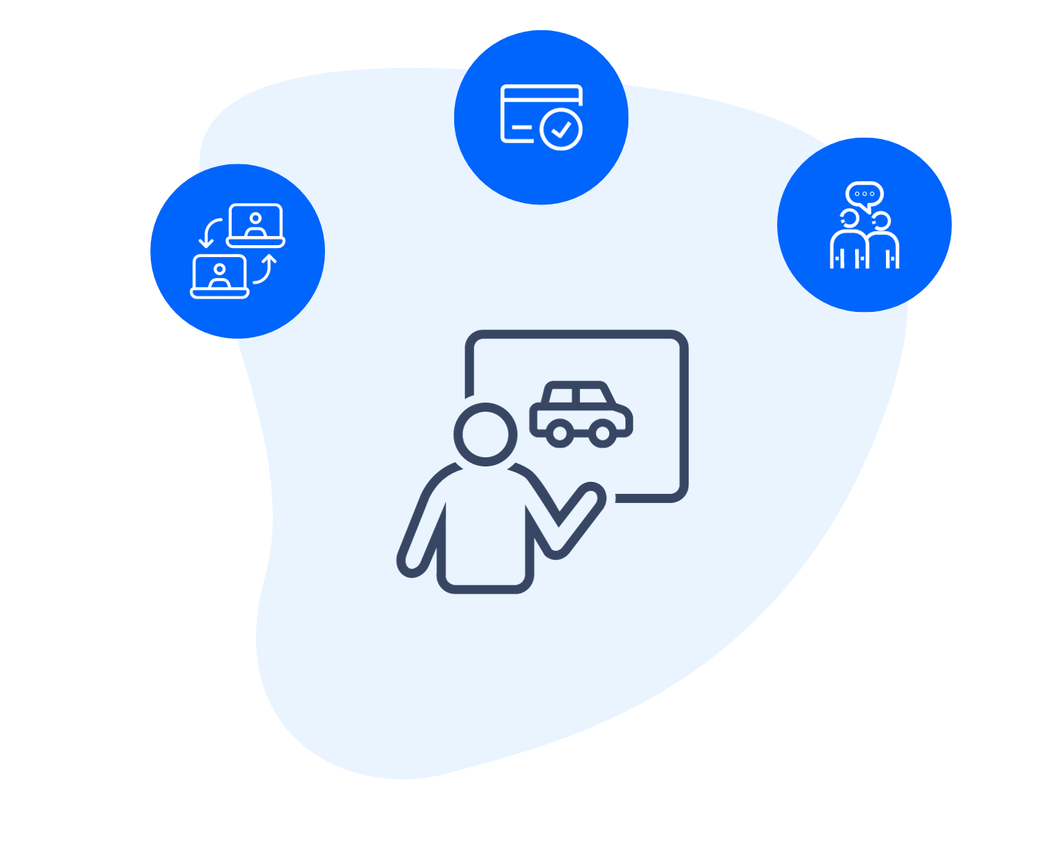 Share your own screen or let the customer share theirs to help and guide them through the selection of the vehicle, configuration and payment options.